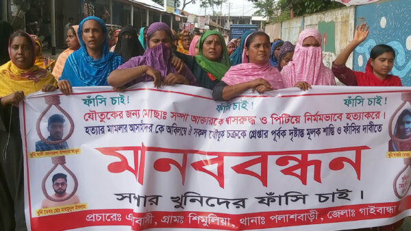 খবরবাড়ি ডেস্কঃ গাইবান্ধার পলাশবাড়ীতে যৌতুকের চাপে গৃহবধু সম্পা আক্তারকে (২৩) বেদম মারপিটসহ শ্বাসরুদ্ধ করে নির্মমভাবে হত্যা করে মুখে কীটনাশক ঢেলে আত্মহত্যা বলে চালিয়ে দেয়ার সাথে জড়িতদের গ্রেফতার পূর্বক দৃষ্টান্ত শাস্তির