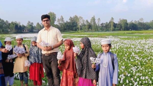 মাসুদ রানা,পলাশবাড়ী,গাইবান্ধাঃ পলাশবাড়ী উপজেলার বিভিন্ন এলাকার মাঠে ছড়িয়ে–ছিটিয়ে আছে অসংখ্য খাল–বিল। শরৎ এবং হেমন্তকালে জলাশয় গুলোতে রঙিন হয়ে উঠেছে কচুরি পানার সাদা–বেগুনি ফুলে। ফুটন্ত এসব ফুলে মুগ্ধ হচ্ছেন পথচারীরা। মনে