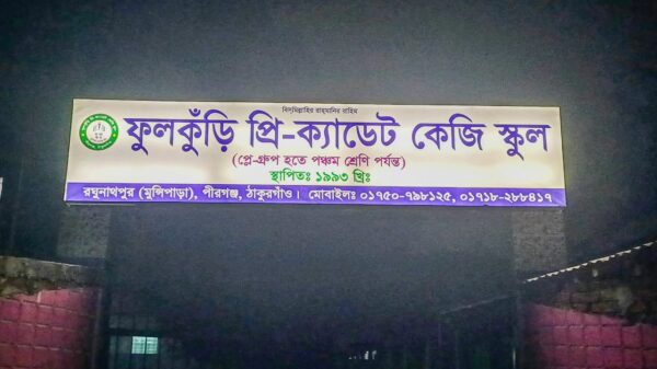 সাকিব আহসান,পীরগঞ্জ, ঠাকুরগাঁওঃ পীরগঞ্জের একটি আবাসিক এলাকায় অবস্থিত ফুলকুঁড়ি প্রি-ক্যাডেট কেজি স্কুলের বার্ষিক অনুষ্ঠান সম্প্রতি স্থানীয় বাসিন্দাদের মধ্যে স্বাস্থ্যগত ও আইনগত উদ্বেগ সৃষ্টি করেছে। ঘটনার সময় স্কুলের আশপাশের তিনটি পয়েন্টে