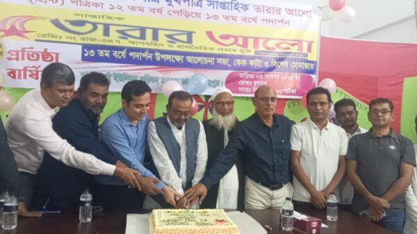 এম.এ.শাহীন,তারাগঞ্জ,রংপুরঃ রংপুরের তারাগঞ্জ থেকে প্রকাশিত স্থানীয় সাপ্তাহিক পত্রিকা ‘তারার আলো’-এর ১২তম প্রতিষ্ঠাবার্ষিকী উপলক্ষে আলোচনা সভা ও কেক কাটা অনুষ্ঠান অনুষ্ঠিত হয়েছে। বুধবার (৫ নভেম্বর) রাত ৮টায় উপজেলার ২নং কুর্শা ইউনিয়ন