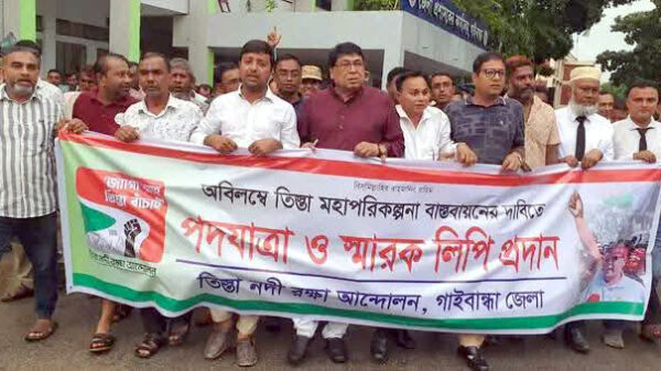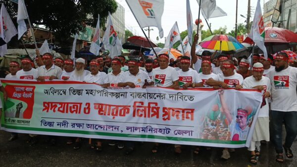 জিন্নাতুল ইসলাম জিন্না,লালমনিরহাট,রংপুরঃ তিস্তা মহাপরিকল্পনা দ্রুত বাস্তবায়ন, তিস্তা নদীর ন্যায্য হিস্যা ও নদী রক্ষার দাবিতে “তিস্তা নদী রক্ষা আন্দোলন”-এর উদ্যোগে লালমনিরহাটে পদযাত্রা ও জেলা প্রশাসকের মাধ্যমে অন্তর্বর্তীকালীন সরকারের প্রধান উপদেষ্টা