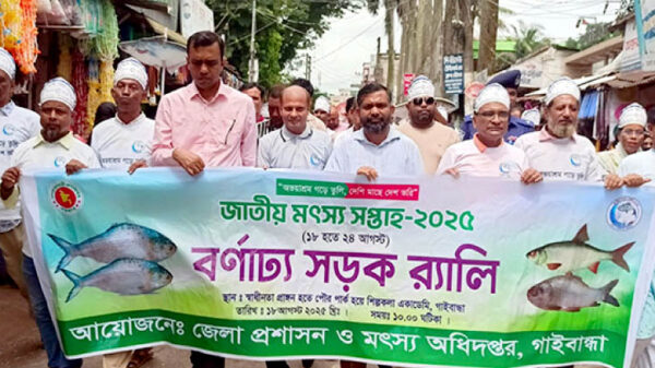খবরবাড়ি ডেস্কঃ ‘অভয়াশ্রম গড়ে তুলি, দেশি মাছে দেশ ভরি’-এই প্রতিপাদ্য বিষয় নিয়ে গাইবান্ধায় জাতীয় মৎস্য সপ্তাহ উপলক্ষে র্যালী ও আলোচনা সভা অনুষ্ঠিত হয়েছে। জেলা প্রশাসন ও মৎস্য অধিদপ্তরের যৌথ আয়োজনে