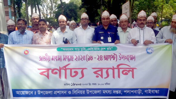 খবরবাড়ি ডেস্কঃ জাতীয় মৎস্য সপ্তাহ উপলক্ষে গাইবান্ধার পলাশবাড়ী উপজেলা প্রশাসন ও সিনিয়র উপজেলা মৎস্য অধিদপ্তরের উদ্যোগে শুভ উদ্বোধন, র্যালী, আলোচনা সভা, পোনা মাছ অবমুক্তকরণ এবং পুরস্কার বিতরণ অনুষ্ঠান অনুষ্ঠিত হয়েছে।