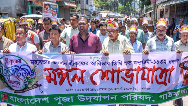 গাইবান্ধার গোবিন্দগঞ্জে মহাবতার ভগবান শ্রীকৃষ্ণের শুভ আবির্ভাব তিথি শ্রী শ্রী জন্মাষ্টমী উপলক্ষে বাসুদেববাড়ী জিউ মন্দির প্রাঙ্গণে আলোচনা সভা ও মঙ্গল শোভাযাত্রায় অনুষ্ঠিত হয়েছে। শনিবার (১৬ আগস্ট) দুপুর ১২টায় উপজেলা পূজা