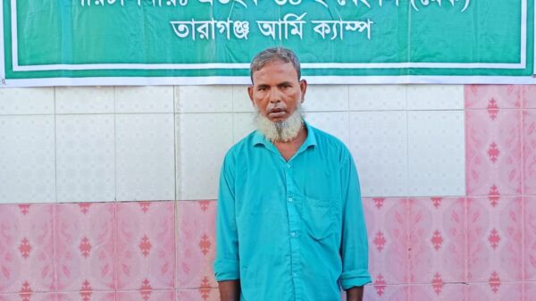 শরীফ মেহেদী হাসান,তারাগঞ্জ,রংপুরঃ রংপুরের তারাগঞ্জ উপজেলার বেলতলী স্বাস্থ্য কমপ্লেক্সের সামনে থেকে শনিবার (১৬ আগস্ট) বিকেল ৪ টায় গোপন সংবাদের ভিত্তিতে অভিযানে ৬ পুড়িয়া হেরোইনসহ গ্রেফতার করা হয়েছে কুখ্যাত মাদক ব্যবসায়ী