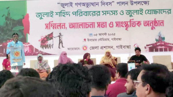 শরীফ মেহেদী হাসান,তারাগন্জ,রংপুরঃ রংপুর জেলা তারাগঞ্জ উপজেলা। আজ ০৫ আগস্ট ২০২৫ খ্রিঃ জুলাই গণঅভ্যূত্থান দিবস। এ দিবস উদযাপন উপলক্ষ্যে “জুলাই পুনর্জাগরণ অনুষ্ঠানমালা ২০২৫”-এর অংশ হিসেবে রংপুর পাবলিক লাইব্রেরি মাঠের বিপরীতে